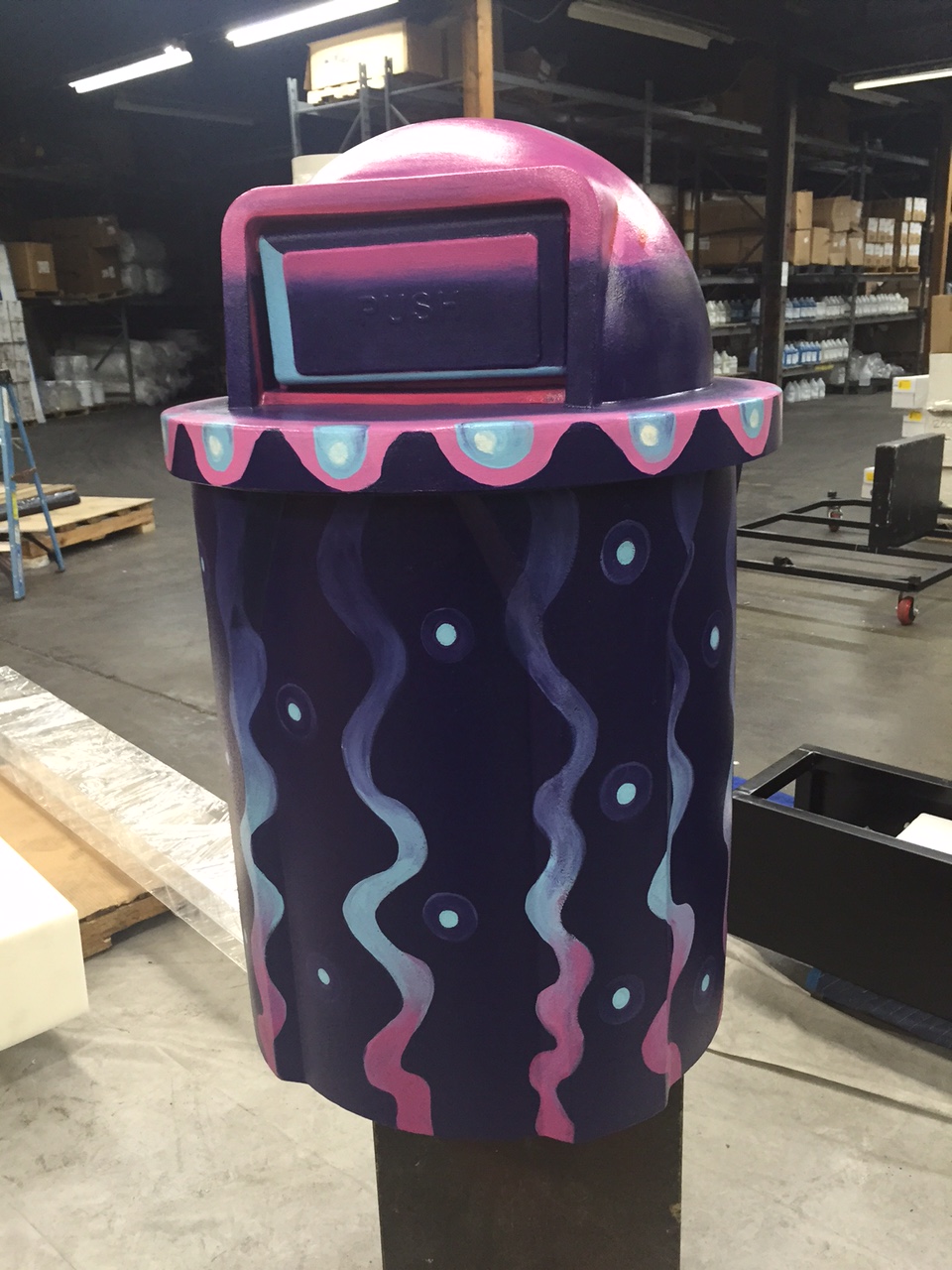 scenic design – trash can painting – snapchat – angie lister (15) August 10, 2017 Trash can painting for Snapchat 960 × 1280 Jellyfish trash can by Angie Lister Jellyfish trash can, scenic design work by Angie Lister for Snapchat