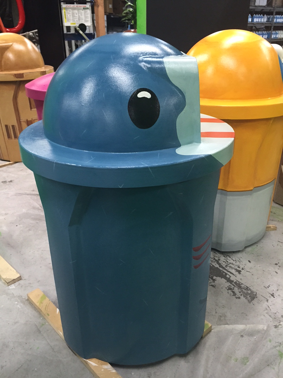 scenic design – trash can painting – snapchat – angie lister (28) August 10, 2017 Trash can painting for Snapchat 960 × 1280 Shark trash can by Angie Lister Shark trash can, scenic design work by Angie Lister for Snapchat