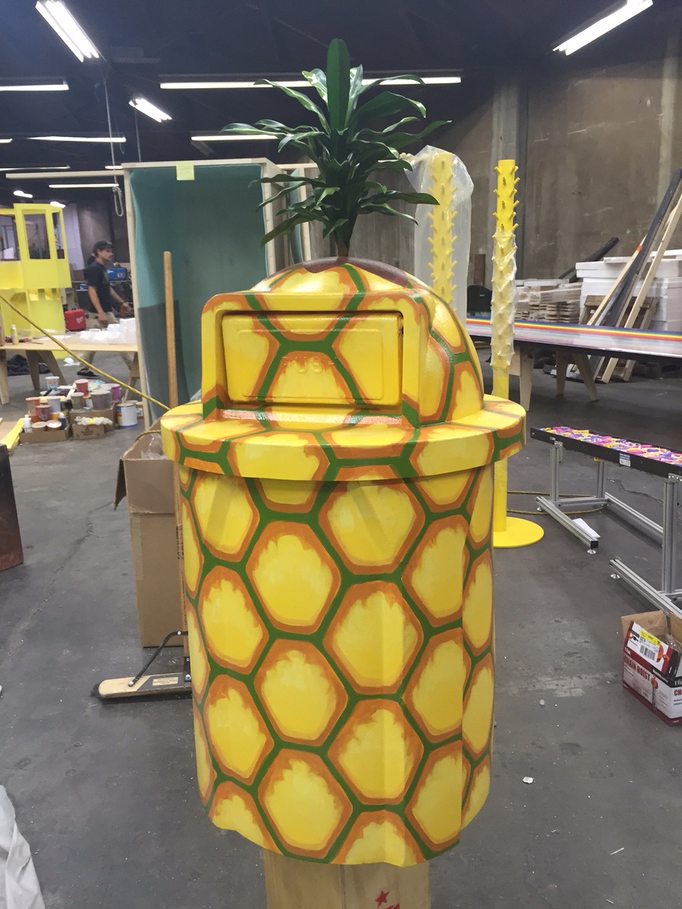 scenic design – trash can painting – snapchat – angie lister (8) August 10, 2017 Trash can painting for Snapchat 960 × 1280 Pineapple trash can by Angie Lister Pineapple trash can, scenic design work by Angie Lister for Snapchat
