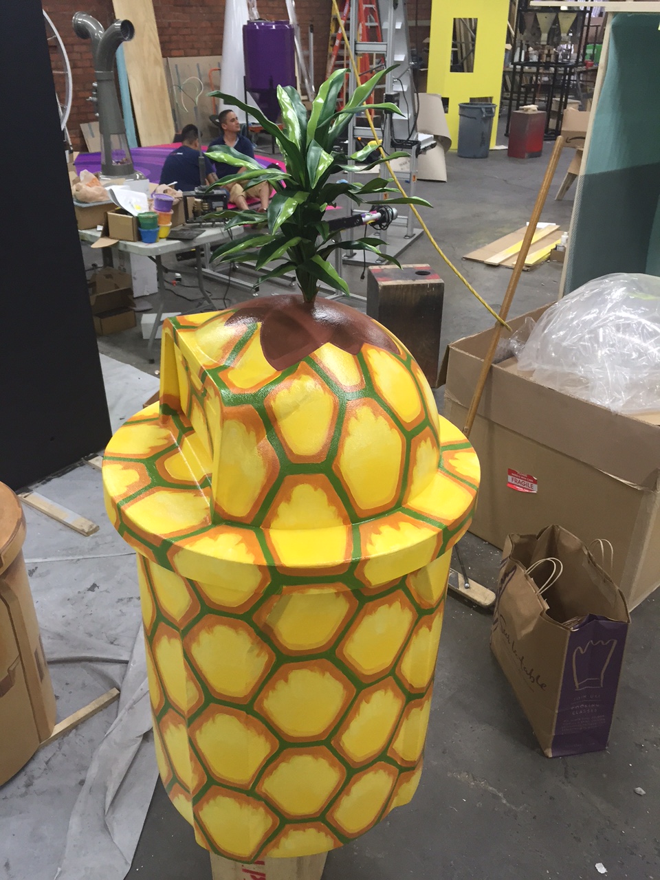 scenic design – trash can painting – snapchat – angie lister (9) August 10, 2017 Trash can painting for Snapchat 960 × 1280 Pineapple trash can by Angie Lister Pineapple trash can, scenic design work by Angie Lister for Snapchat